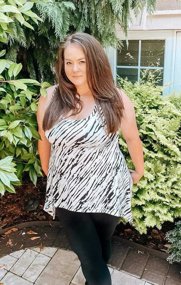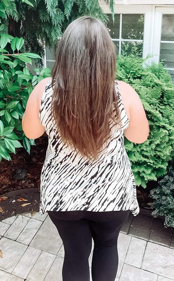 The Shark Bite Tank is a swing tank with a flattering profile just like the Sadie Tank! The Shark Bite tank is semi fitted in the bust and loose in the waist and hips, with an exaggerated inverted curve. Shirt length sits mid booty and also has additional back options.