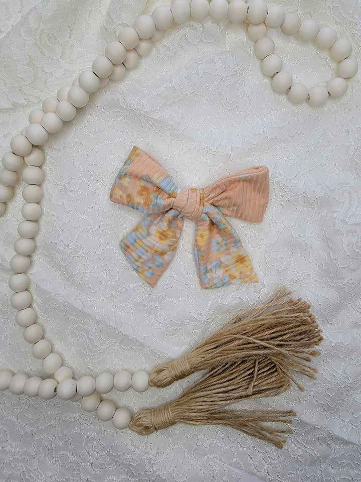 Peach Floral Dainty Bow (on clips)