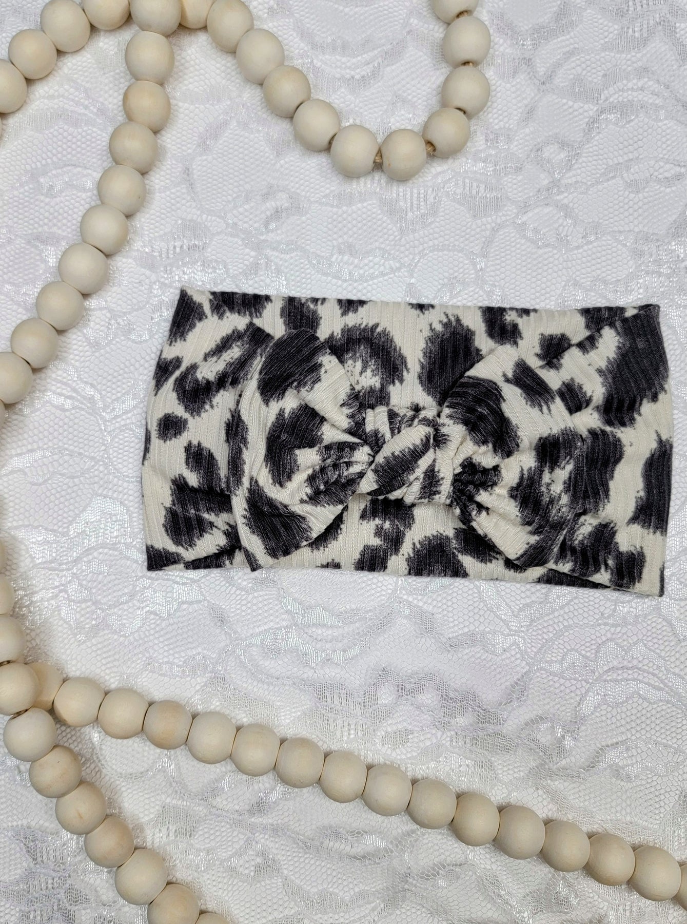 Cream Leopard Big Bow Headwrap