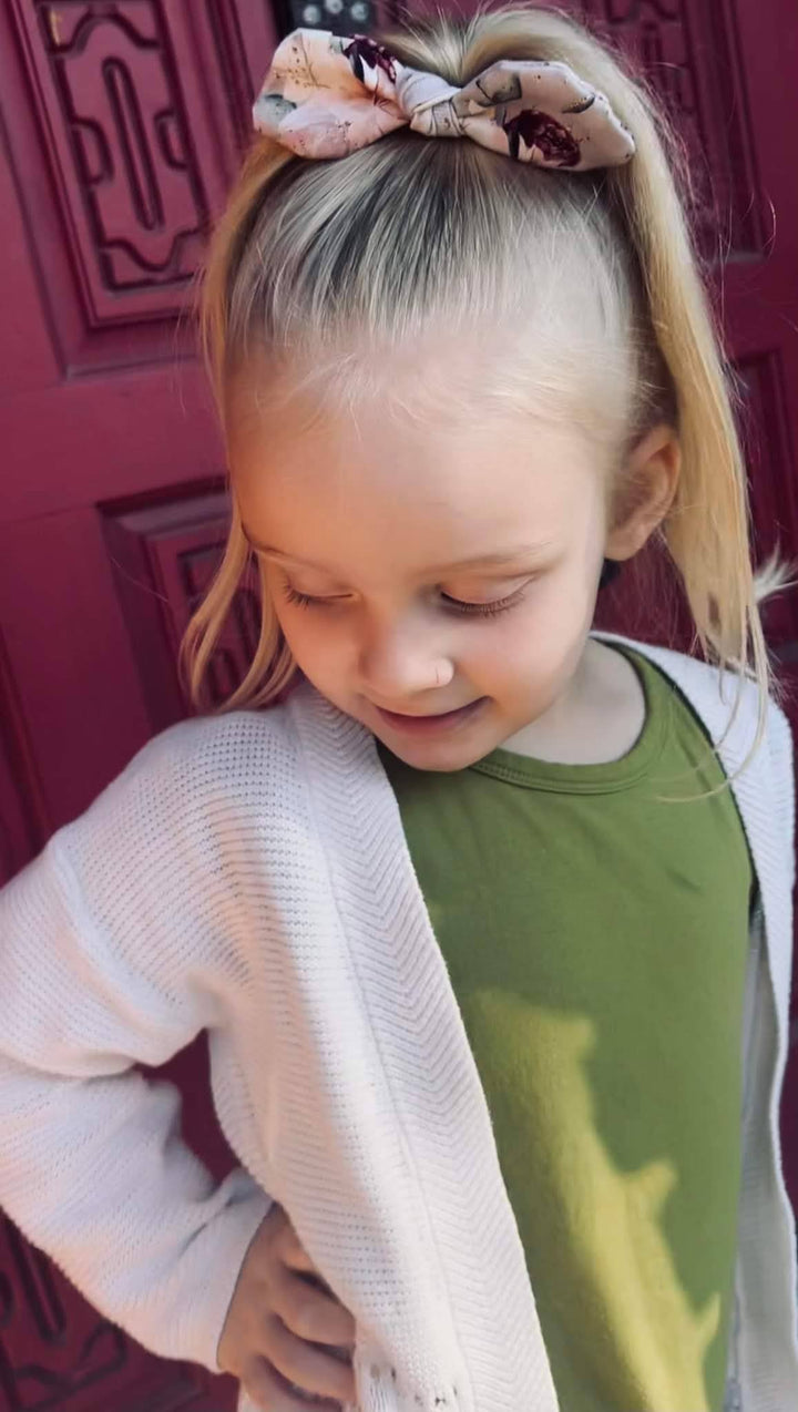 The bow is tied into a secure knot on a ponytail elastic that won't come undone when being used.