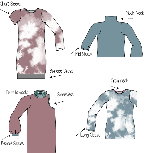 • Sleeveless, Short, Midi, Long, or Bishop Sleeves